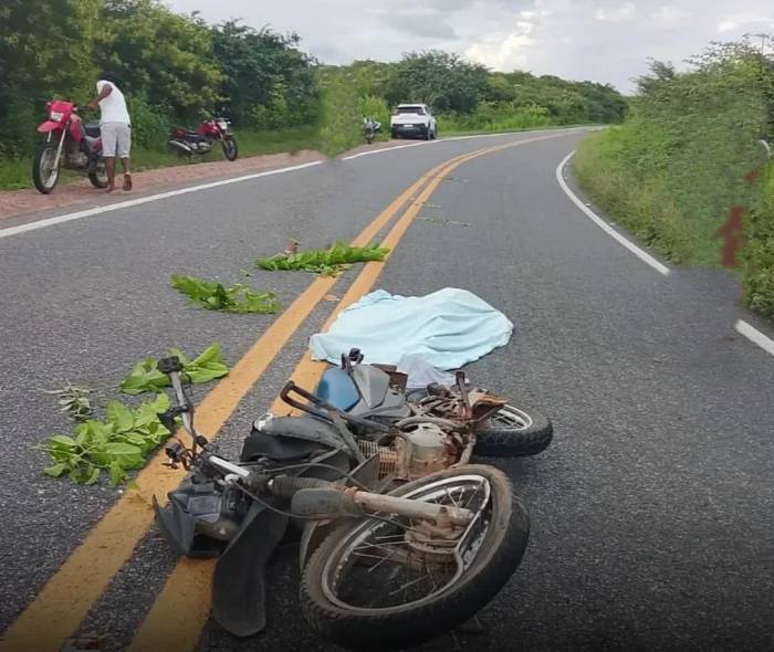 Um motociclista vítima de acidente provocado por animal na pista na zona rural de Parambu, morreu no HRSC, em Quixeramobim.
