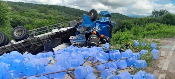 Um caminhão capotou na manhã de hoje (10/04), na CE-176, na zona rural do município de Aiuaba.