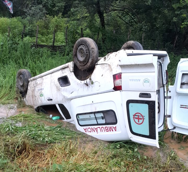 Uma ambulância do município de Aiuaba capotou na manhã de hoje (20/03), na CE-176.