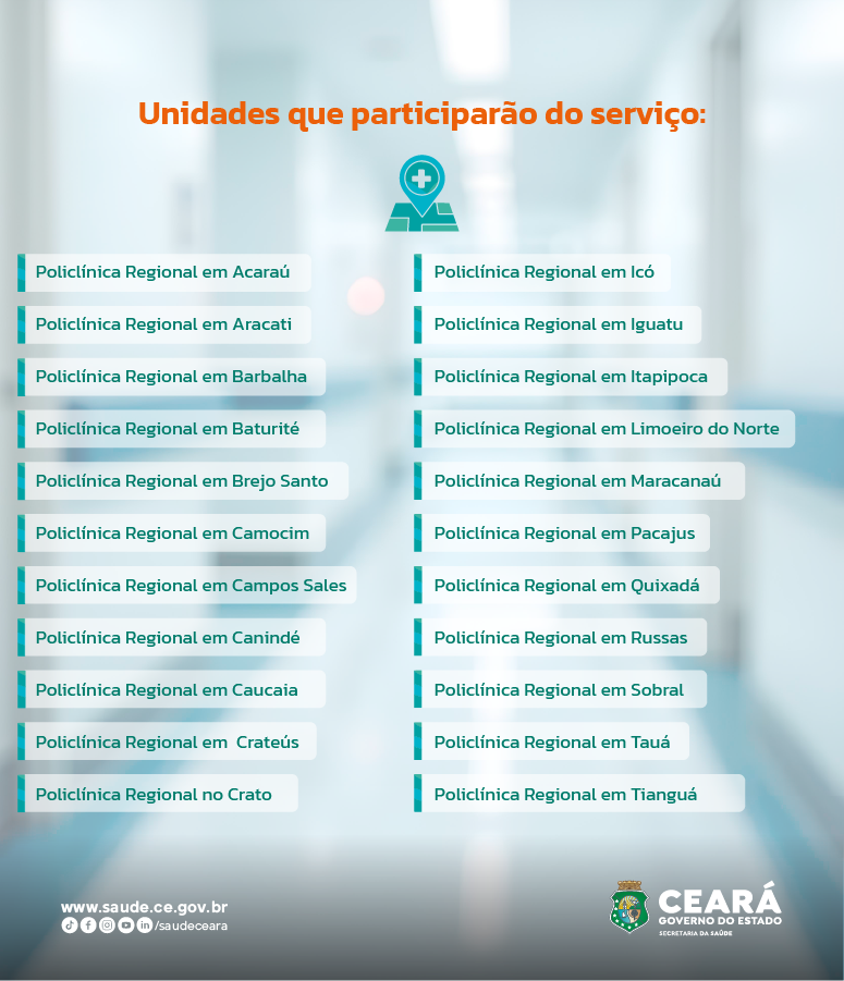 Como forma de otimizar o contato com os pacientes, a Secretaria da Saúde do Ceará (Sesa) amplia o envio de mensagens via WhatsApp também para os pacientes com atendimentos agendados nas policlínicas regionais. O objetivo é confirmar o agendamento de consultas e exames nos equipamentos da Rede. O contato com os pacientes é feito exclusivamente pelo número (85) 98682-9000.