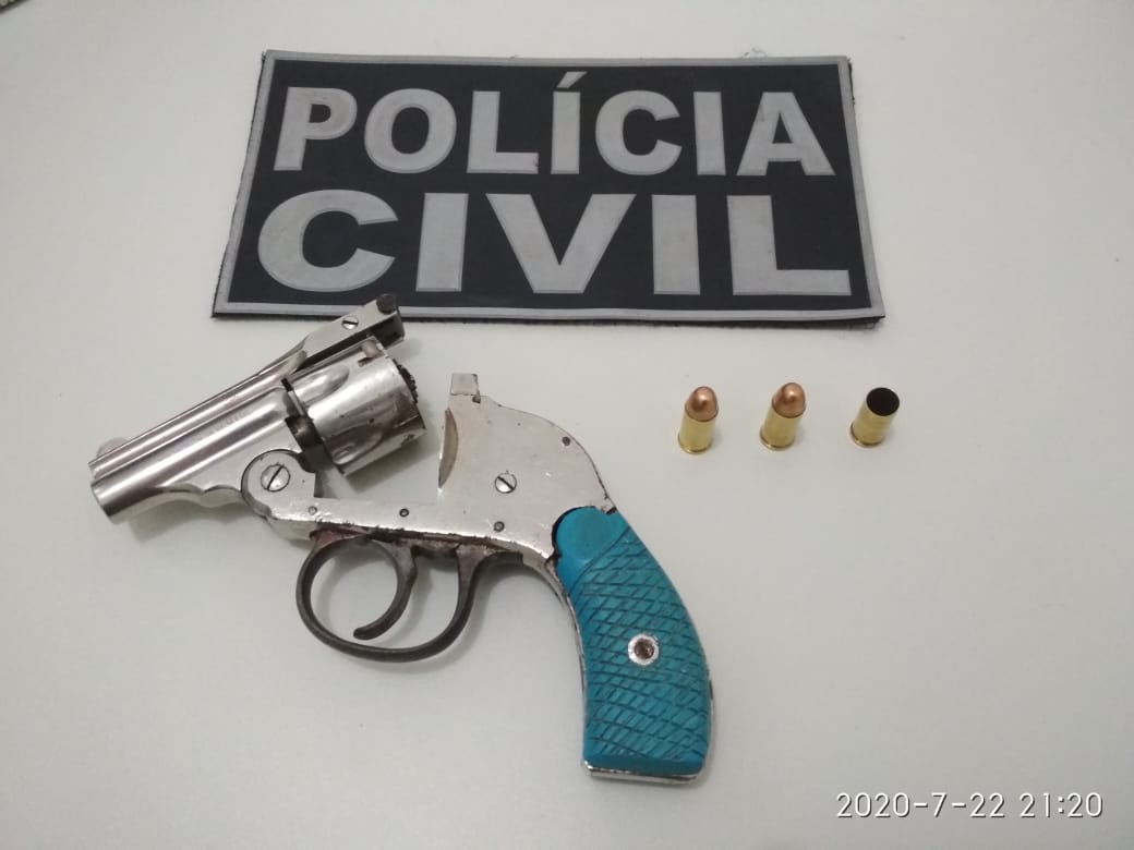 Policiais civis da 14ª DP apreenderam um revólver calibre 32 com 3 munições, em um bar na localidade de Lustal 1, na Sede Distrital de Tauá.