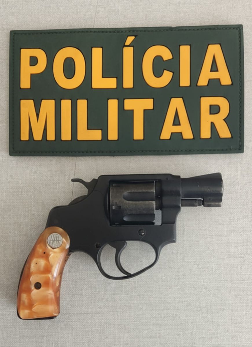 Um revólver calibre 32 desmuniciado, foi apreendido pela Polícia Militar após perseguição a um motoqueiro por volta de 9h33 da manhã de hoje (12/11), à altura da localidade de São Bento, na zona rural do município de Catarina.