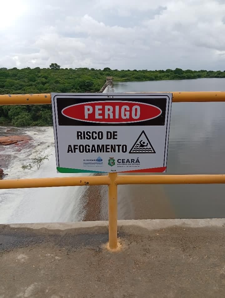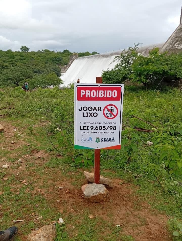 COGERH instala placas alertando e orientando a população de Tauá sobre riscos nos banhos e a preservação ambiental na Barragem do Trici, em Tauá.