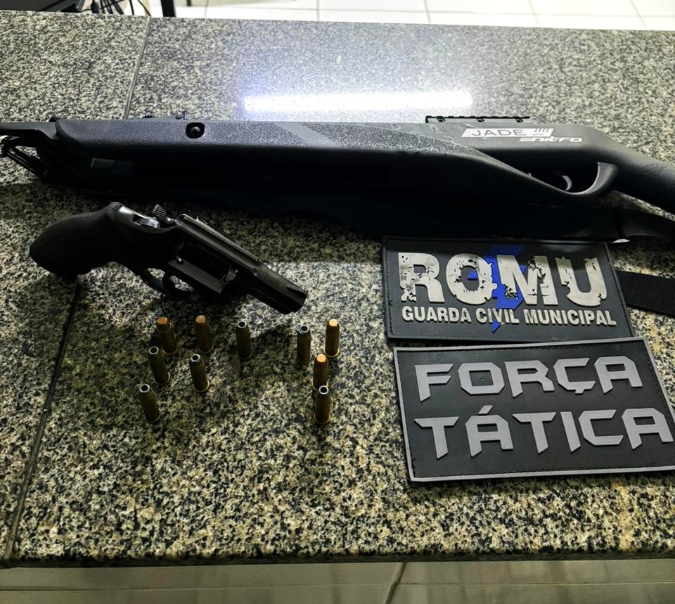 Equipes da Força Tática, POG e ROMU da Guarda Civil Municipal, se deslocaram ao endereço na Rua Antônio Vieira Gomes, no Bairro Dr. José Ósimo, e após autorização da proprietária, foi realizada busca minuciosa e encontrada uma meia contendo 05 (cinco) munições em cima de um guarda-roupa.
