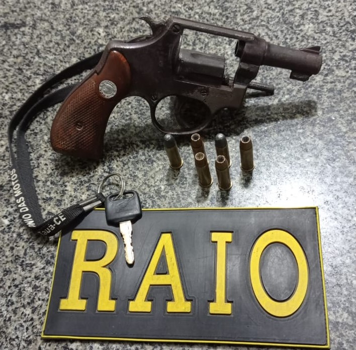 Uma equipe do CPRaio composta pelo 2° Sargento Ademar e soldados Wilker e Alves, apreendeu um revólver, prendeu um adulto e apreendeu um menor na madrugada de hoje(26), no Bairro Bezerra e Sousa, em Tauá.