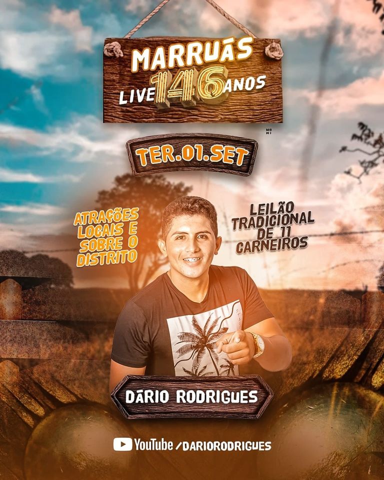 A programação começa a partir das 18:30h e terá ainda, apresentação de documentações sobre a história do distrito, literatura de cordel, músicas em homenagem ao Marruás e leição de 11 carneiros.