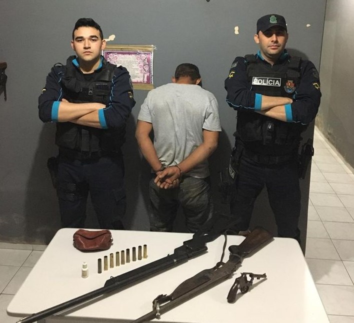 A Polícia Militar de Aiuaba prendeu um homem e apreendeu três armas de fogo na localidade de Sítio Catolezeiro, na zona rural do município, acusado de ameaçar a ex-mulher.