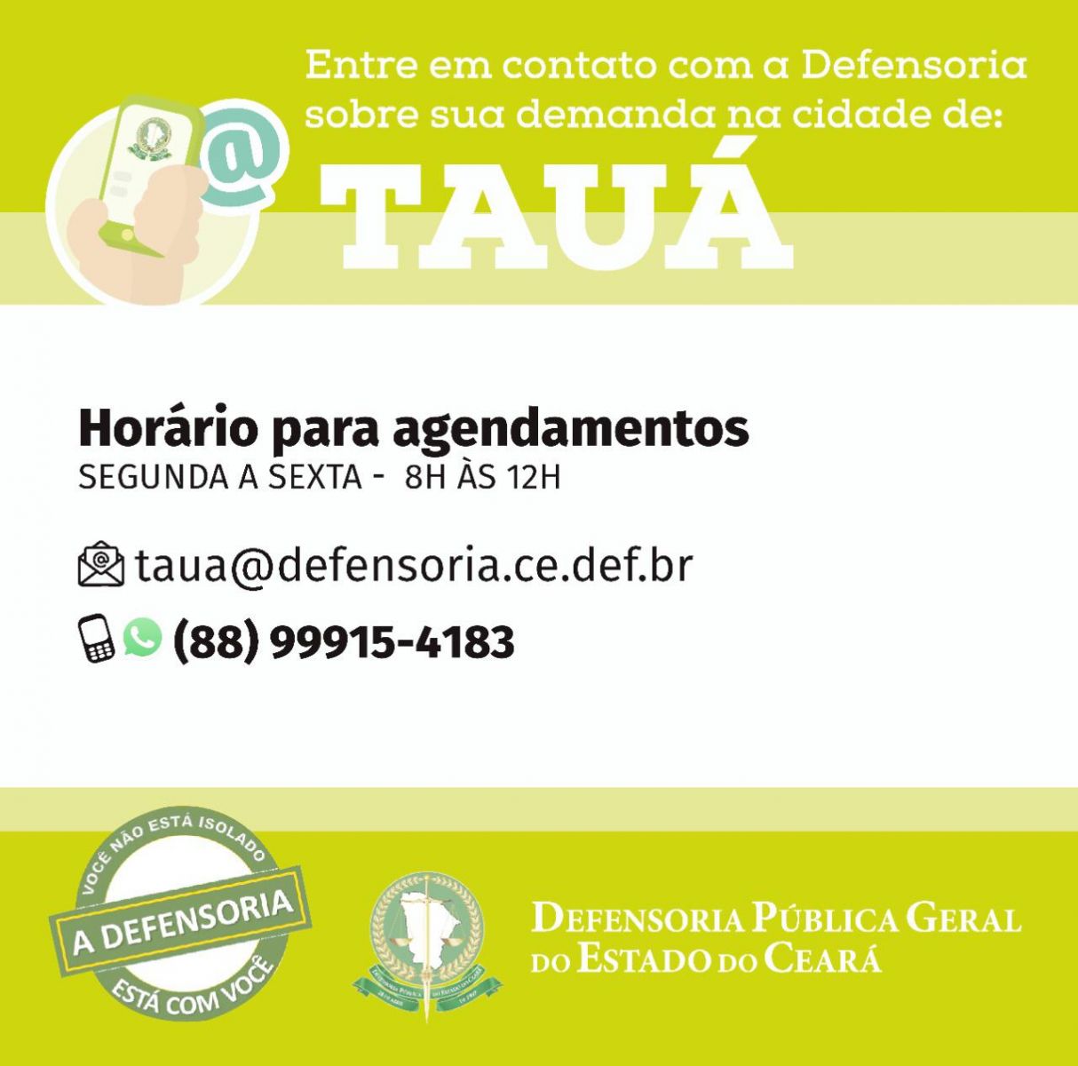 A Defensoria Pública do Município de Tauá disponibiliza novo contato para atendimento a população por meio de agendamento.