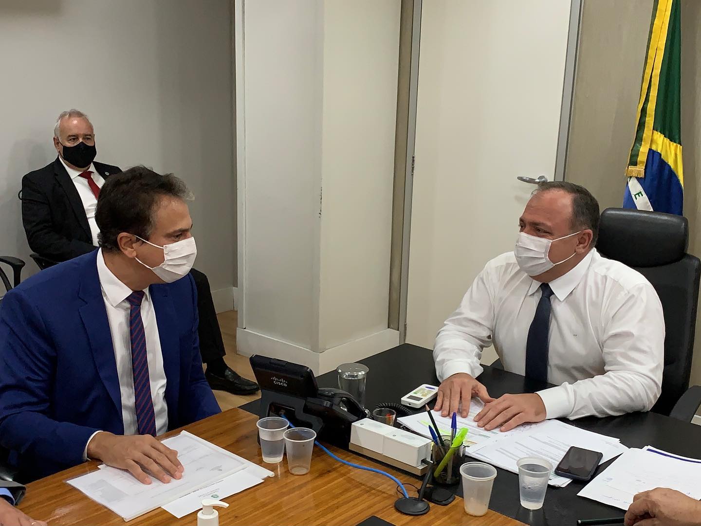 O Ceará deverá seguir o plano de vacinação proposto pelo Governo Federal. A informação foi confirmada pelo governador Camilo Santana (PT) após reunião com o ministro da saúde, Eduardo Pazuello, na tarde desta segunda-feira (14), em Brasília. O Secretário de Saúde do Ceará, Dr. Cabeto, também participou do encontro.