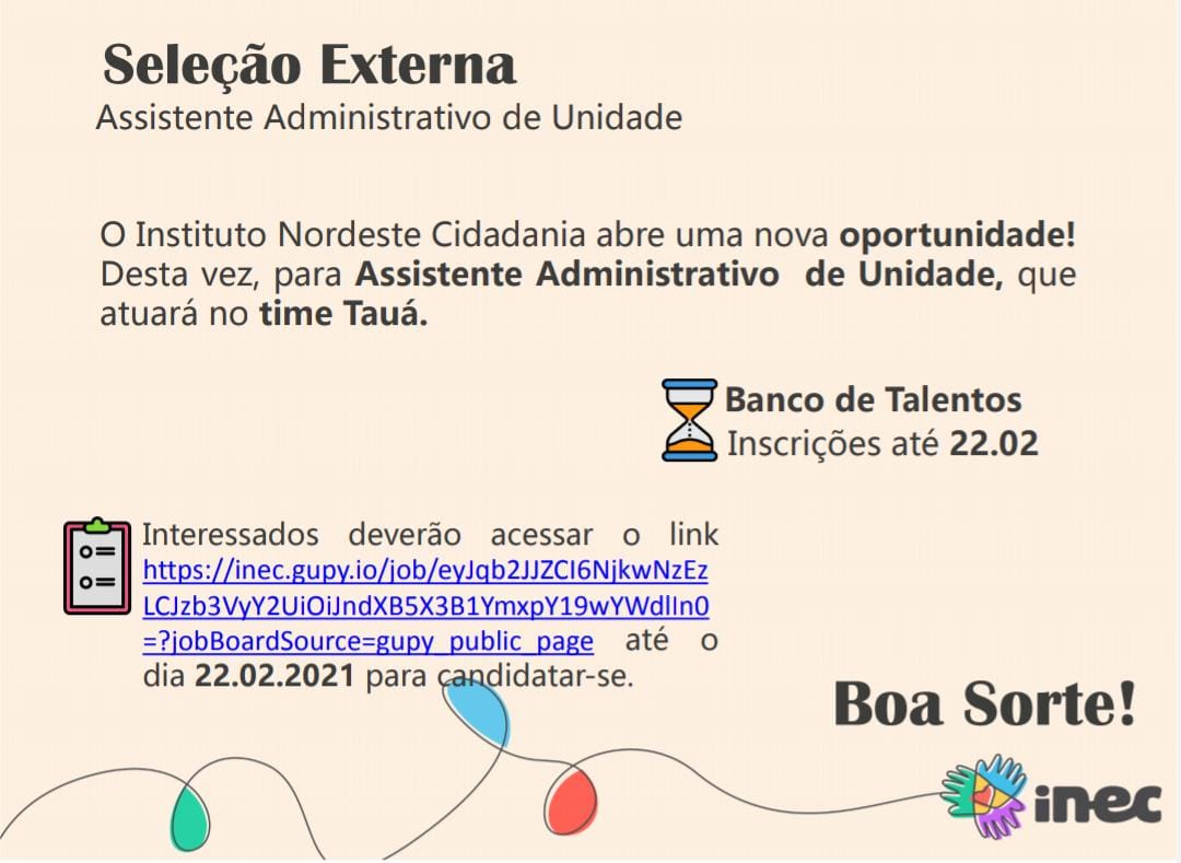 O Instituto Nordeste Cidadania está com inscrições abertas para seleção de Assistente Administrativo que atuará na Unidade do CREDIAMIGO de Tauá.