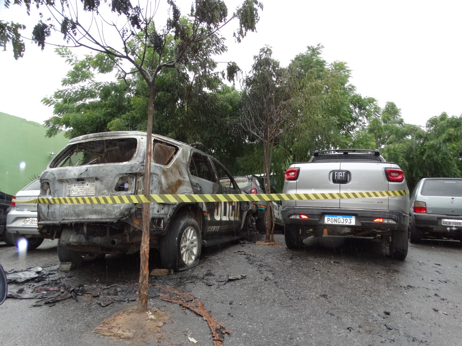 Ao todo, foram atingidas 4 viaturas, sendo duas caracterizadas e duas que eram usadas em investigações. A preocupação era que as chamas atingissem outros veículos parados no pátio da Delegacia.