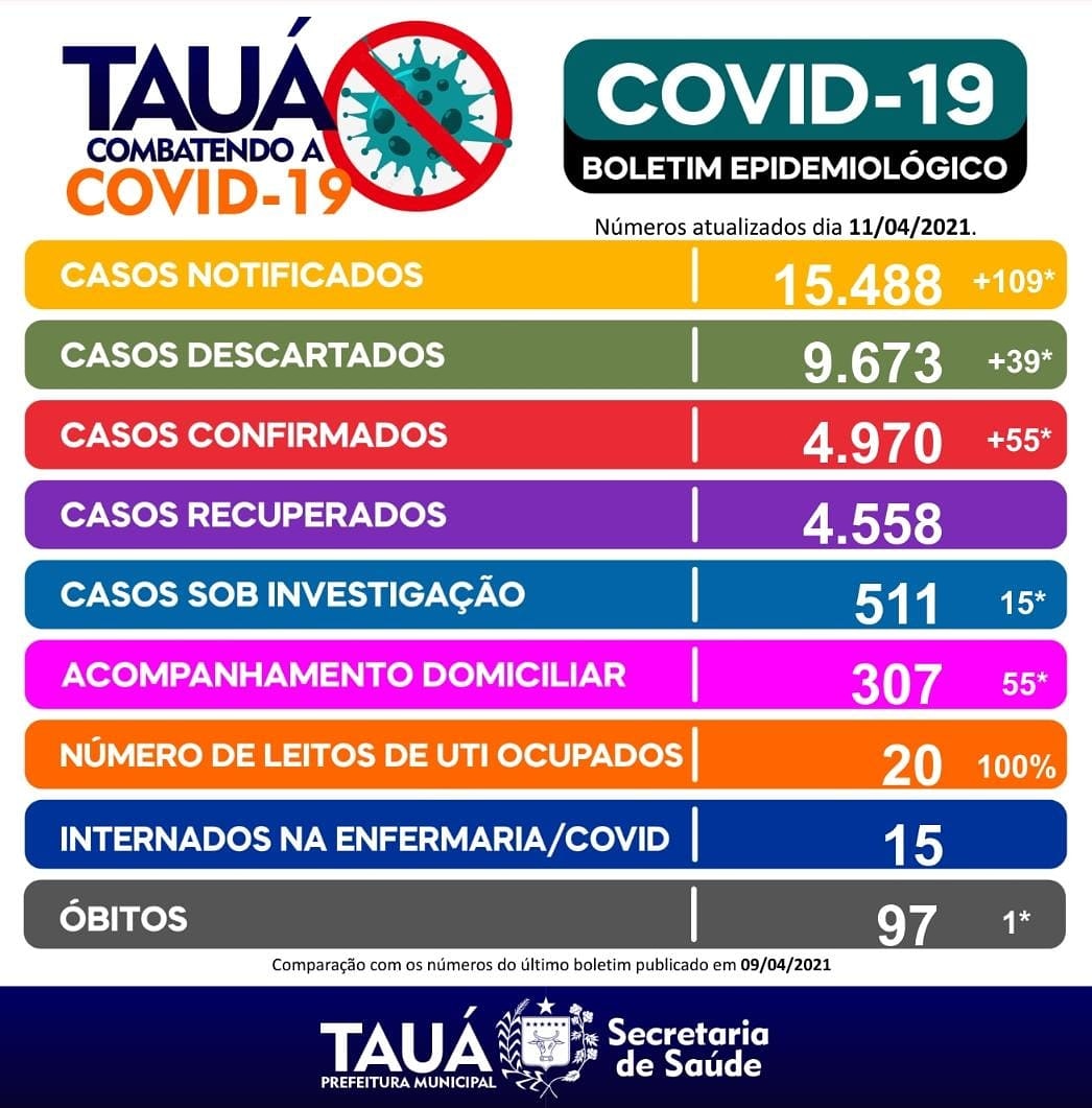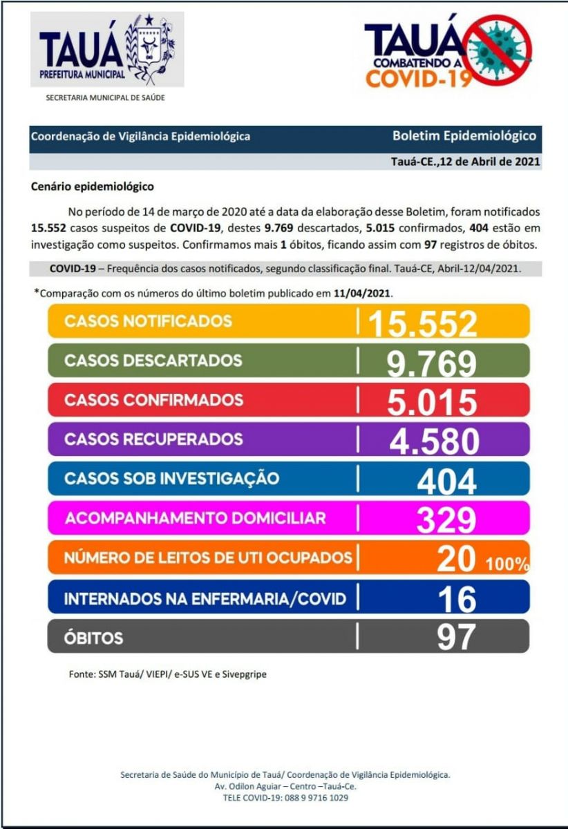 A Secretaria de Saúde do Município de Tauá atualizou na noite de ontem(12), os números da pandemia da Covid-19.