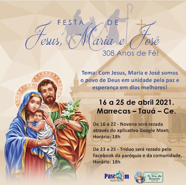 Convidamos a todos os devotos e devotas de Jesus, Maria e José, espalhados pelos mais diversos rincões do nosso Brasil, para acompanhar nossas celebrações pelas redes sociais e assim, sermos testemunhas de que a fé nos manterá firme pela graça divina e da misericórdia.