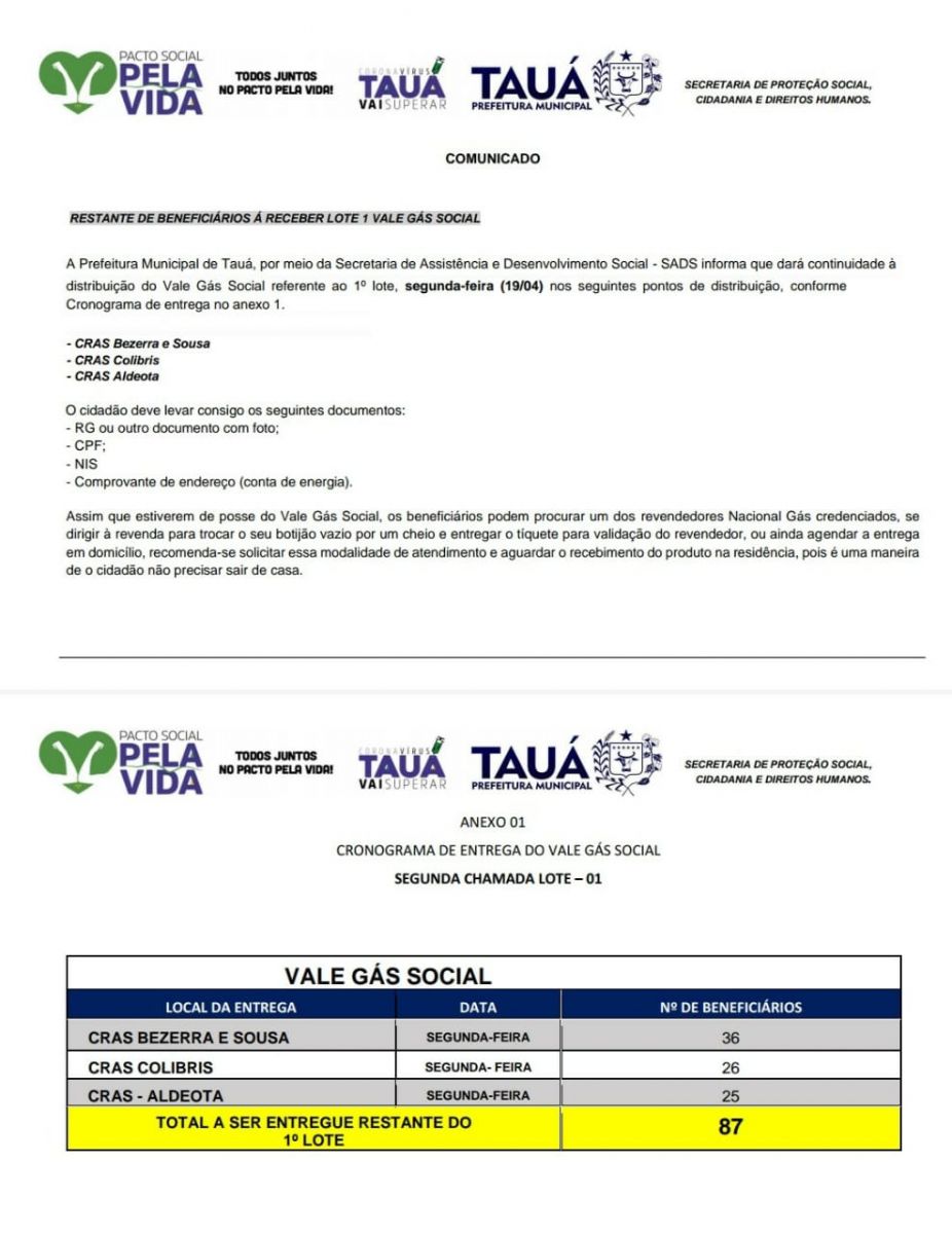 87 beneficiários não receberam o tíquete do Vale Gás Social do Governo do Estado no município de Tauá. A distribuição ocorreu entre terça(13) e quinta(15).