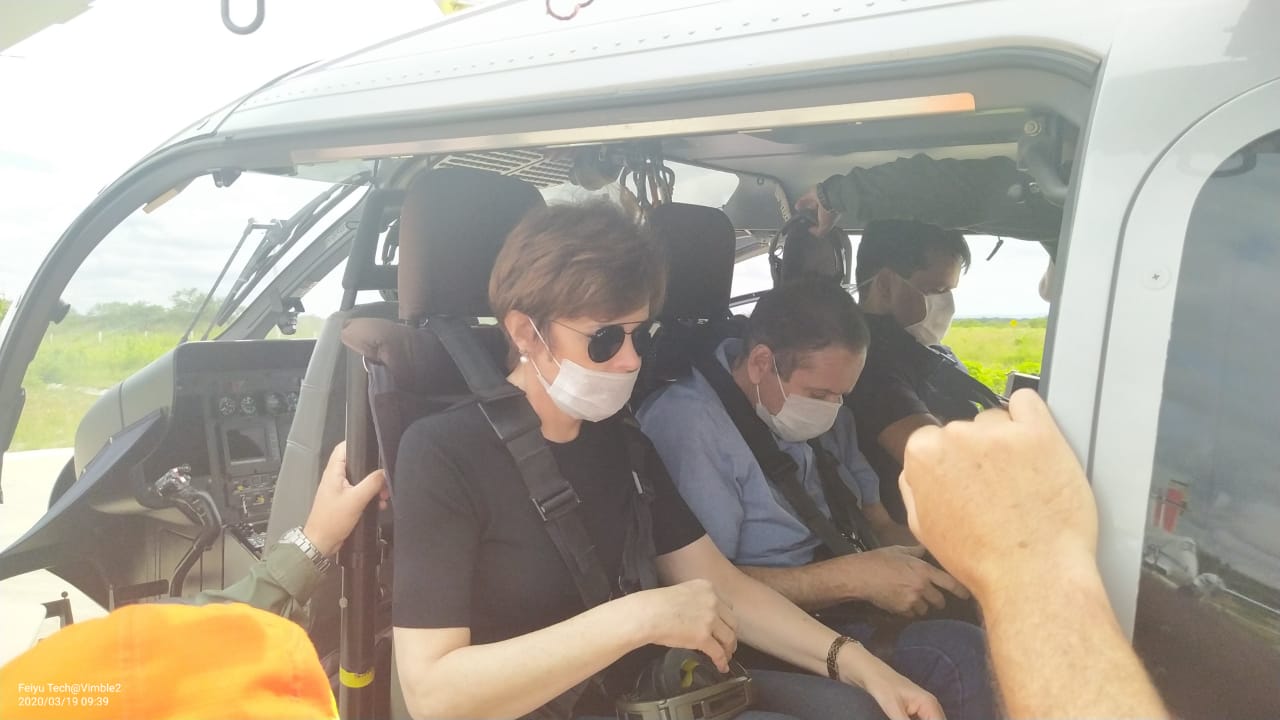 Após atenderem a imprensa no Aeroporto, as autoridades embarcaram em um helicóptero do Ciopaer(Base de Juazeiro do Norte) que está na região desde o início da semana, para sobrevoarem os municípios atingidos, Tauá, Quiterianópiolis, Novo Oriente e Crateús.