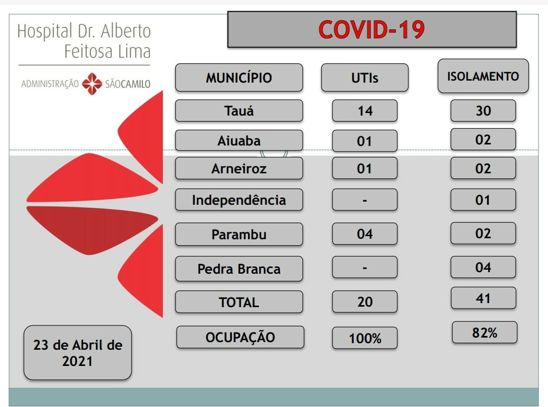 São 20 leitos de UTI e 47 de Enfermaria-Covid, que em sua grande maioria estão ocupados por pacientes de Tauá.
