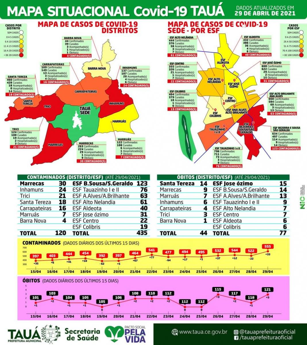 A Secretaria de Saúde do Município de Tauá divulgou ontem(20), o Mapa Situação da Covid-19, com informações sobre a pandemia nos Bairros da cidade e Distritos.