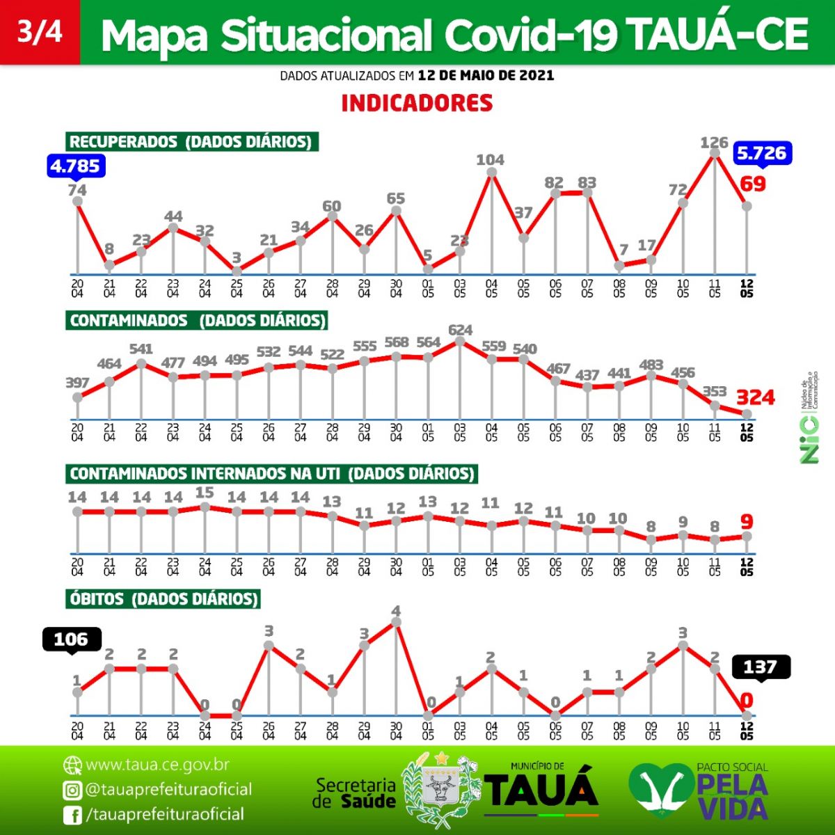 A Secretaria de Saúde do Município de Tauá divulgou na noite de ontem(12) o Mapa Situacional da Covid por Bairro e Distrito. Os números mostram leve redução nos índices de contaminação.