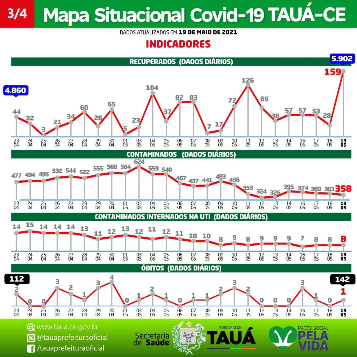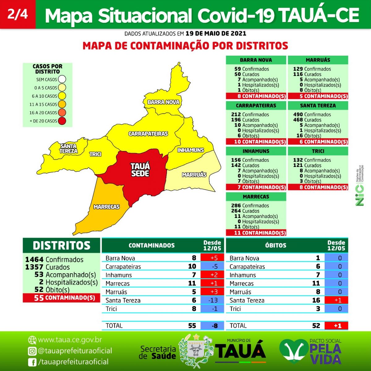 A Secretaria de Saúde do município de Tauá divulgou ontem(19), o terceiro Mapa Situacional atualizando os números da pandemia da Covid-19, por Bairro e Distrito.