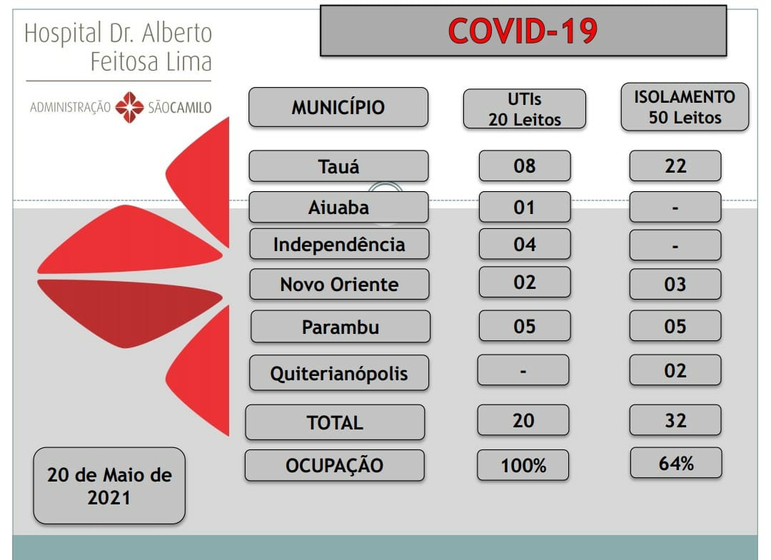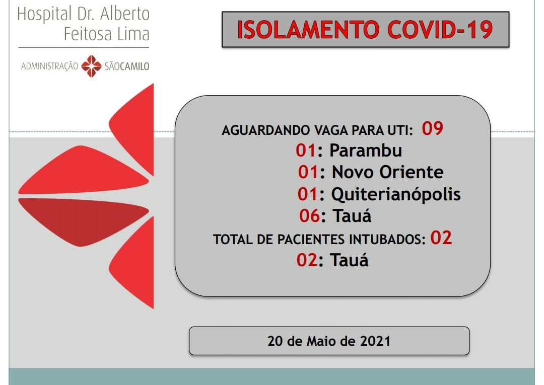 O Hospital Dr. Alberto Feitosa Lima continua com 100% de taxa de ocupação na UTI e 9 pacientes na fila de espera, sendo 6 de Tauá.