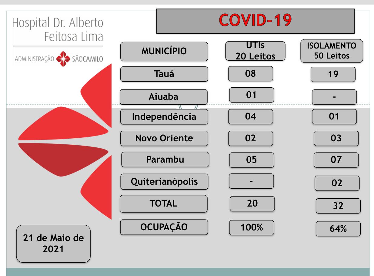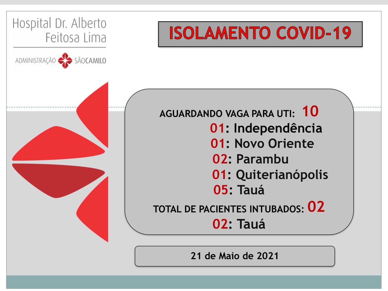 O Hospital Dr. Alberto Feitosa Lima tem 10 pacientes na fila de espera por leito de UTI-COVID, sendo 5 de Tauá.