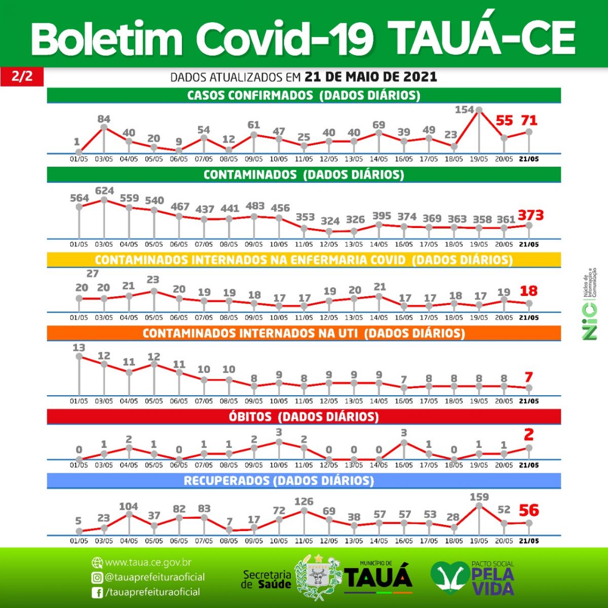 Mais dois óbitos por coronavírus foram registrados nas últimas 24h, elevando para 145 o número de mortes pela doença no município de Tauá. O Boletim Epidemiológico foi divulgado na noite de hoje(21) pela Secretaria de Saúde.