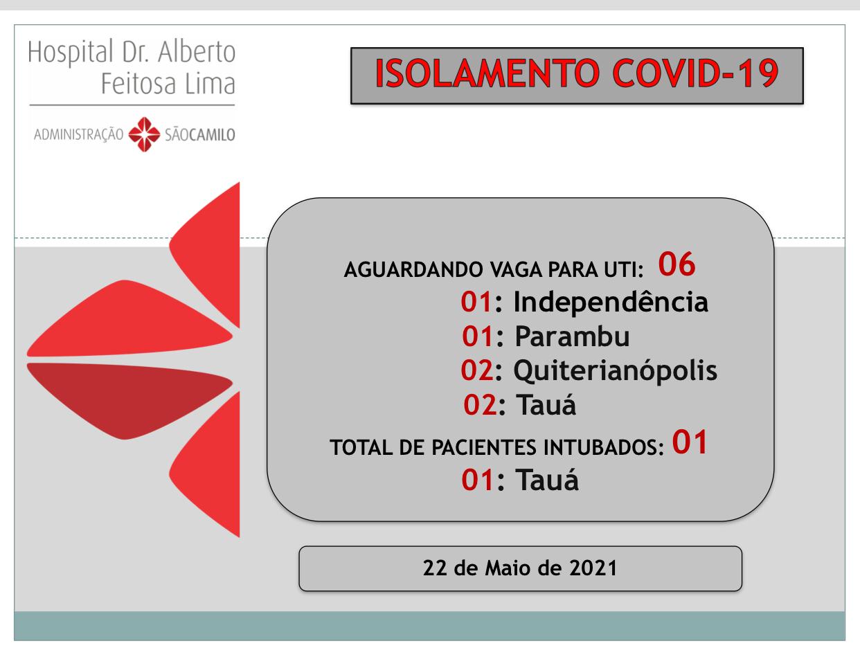 O boletim divulgado pelo Hospital Dr. Alberto Feitosa Lima aponta 06 pacientes na fila de espera por leito de UTI-COVID, sendo 02 de Tauá.