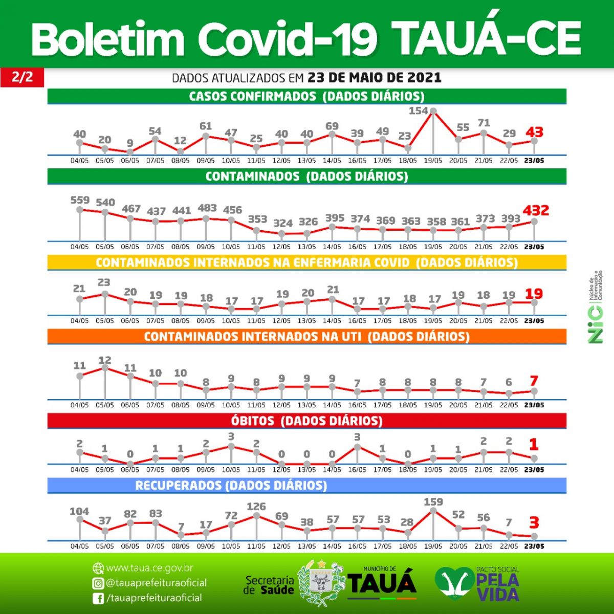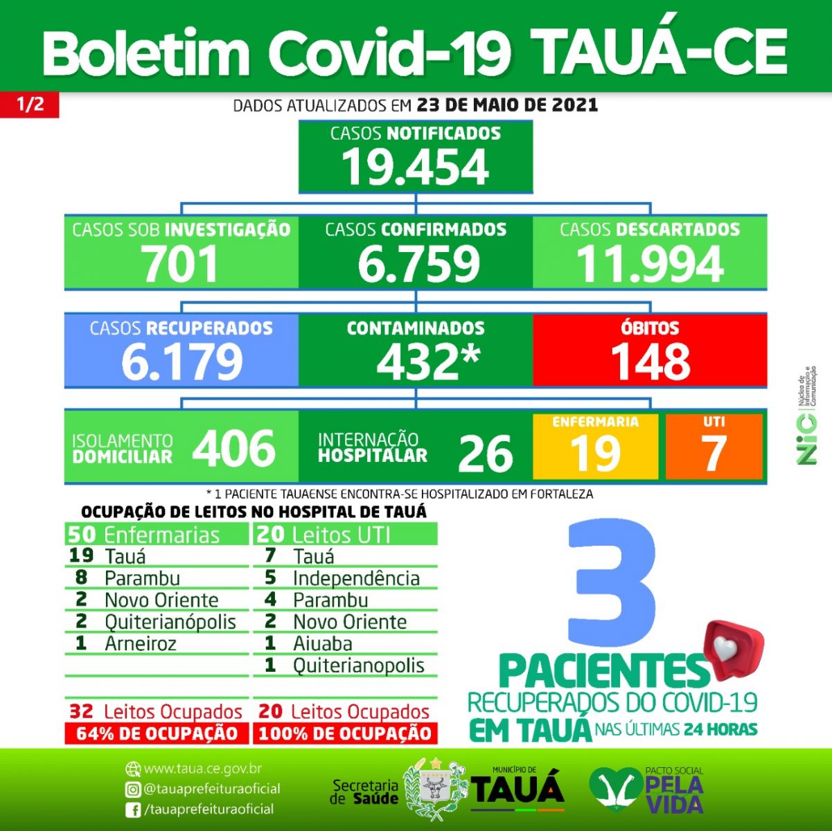 O município de Tauá contabilizou o 148º óbito por Covid em Boletim Epidemiológico divulgado na noite de ontem(23).