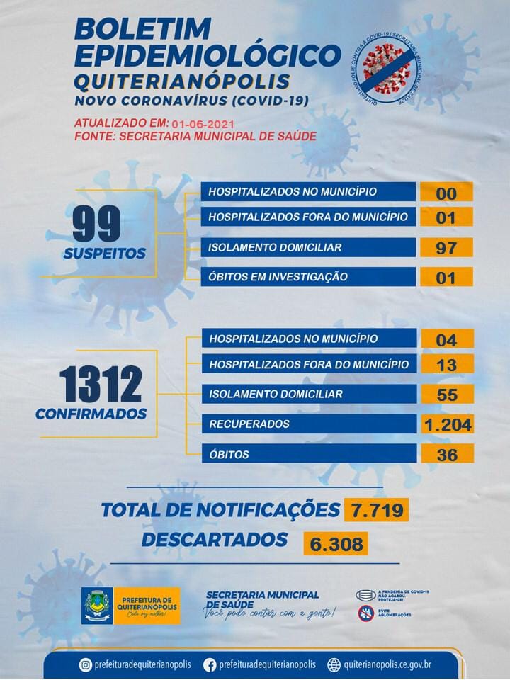 Três óbitos provocados pelo coronavírus foram registrados no município de Quiterianópolis num intervalo de 24h, elevando o número de mortos para 36.