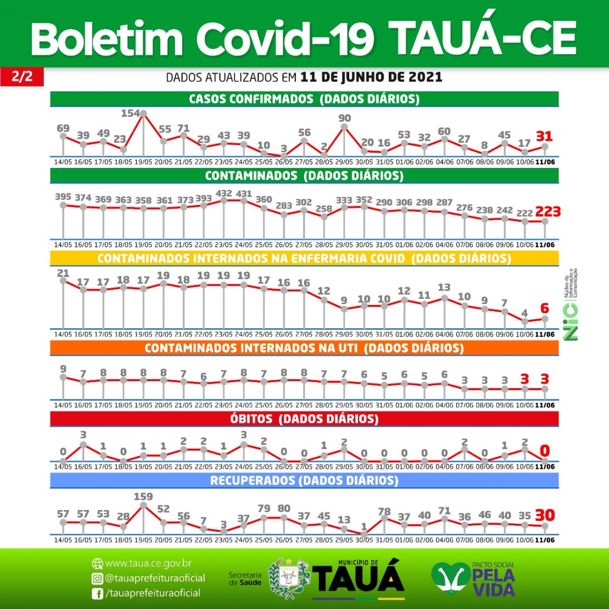 A situação da Covid-19 segue em estabilidade no Município de Tauá, segundo o Boletim Epidemiológico divulgado ontem(11), pela Secretaria de Saúde.