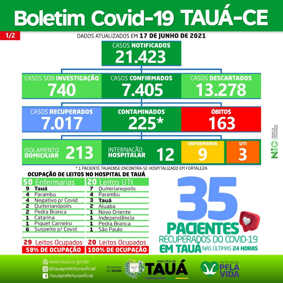O número de pessoas curadas de Covid superou o de infectados, segundo o Boletim Epidemiológico divulgado ontem(18), pela Secretaria de Saúde do Município de Tauá.