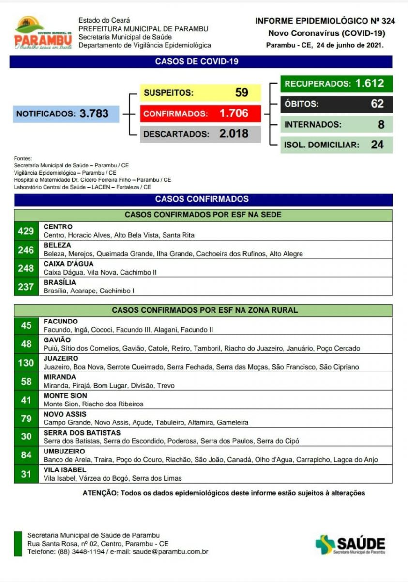 Após 14 dias de lockdown total, o município de Parambu não registra mortes por Covid há 10 dias, segundo o Boletim Epidemiológico divulgado hoje(24), pela Secretaria de Saúde.
