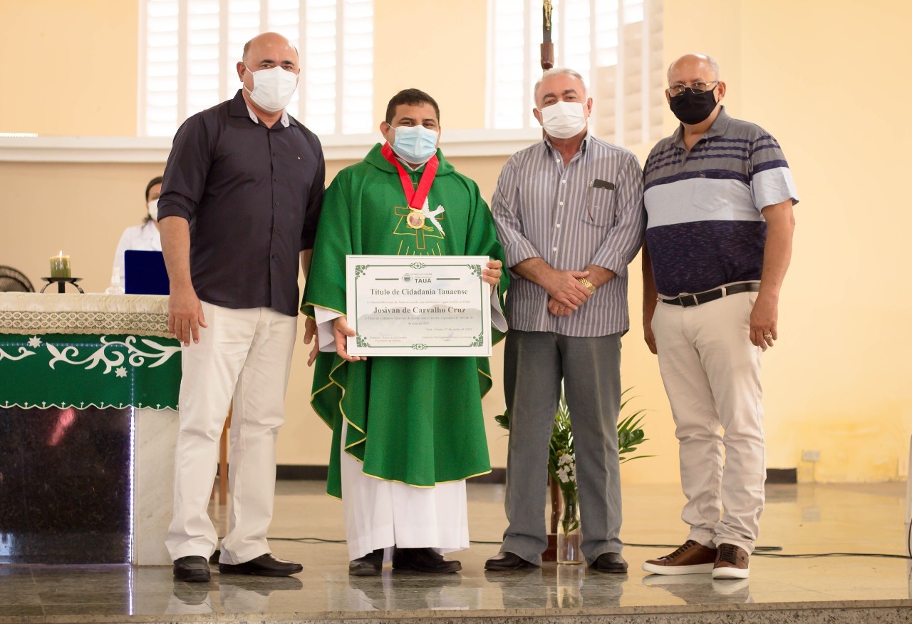 O Padre Josivan Cruz foi agraciado com o Título de Cidadania Tauaense e a Medalha do Mérito Legislativo Prefeito Antônio Jatay Sobrinho, na manhã de ontem(27), após celebrar sua última missa na Paróquia de Tauá.