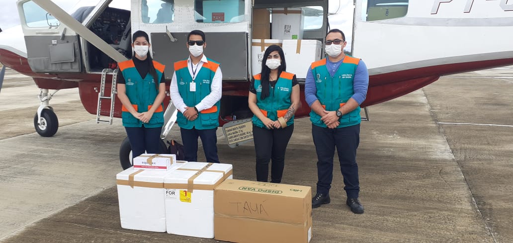 A 26ª remessa de vacinas contra a Covid-19 destinadas aos 4 municípios pertencentes a 14ª Célula Regional de Saúde chegou na última sexta-feira(02), ao Aeroporto Regional Pedro Teixeira Castelo, em Tauá. Ao todo, chegaram 1.537 doses dos imunizantes, AstraZeneca e Pfizer, já entregues aos municípios de Tauá, Aiuaba, Arneiroz e Parambu.