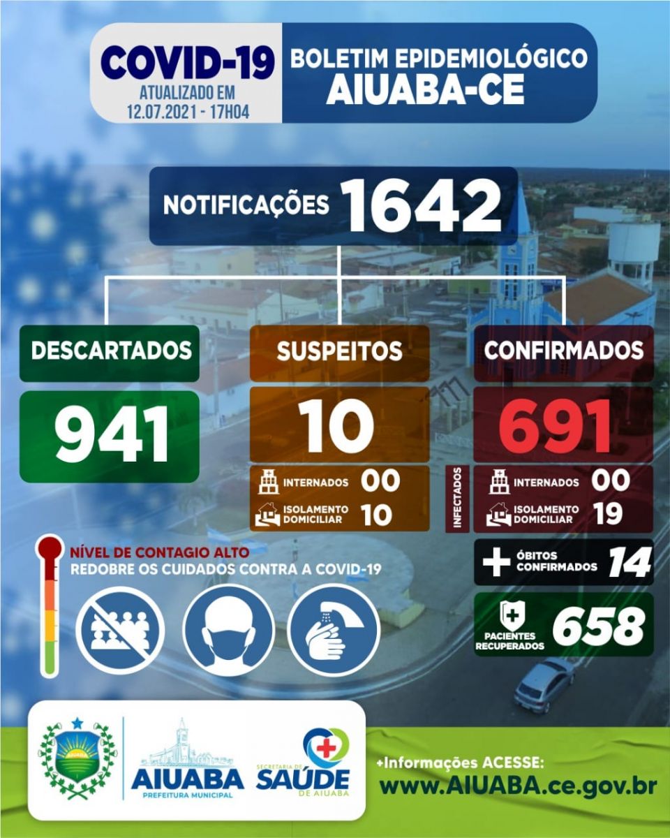 O Boletim divulgado hoje(12), contabilizou o 14º óbito por Covid no Município de Aiuaba.