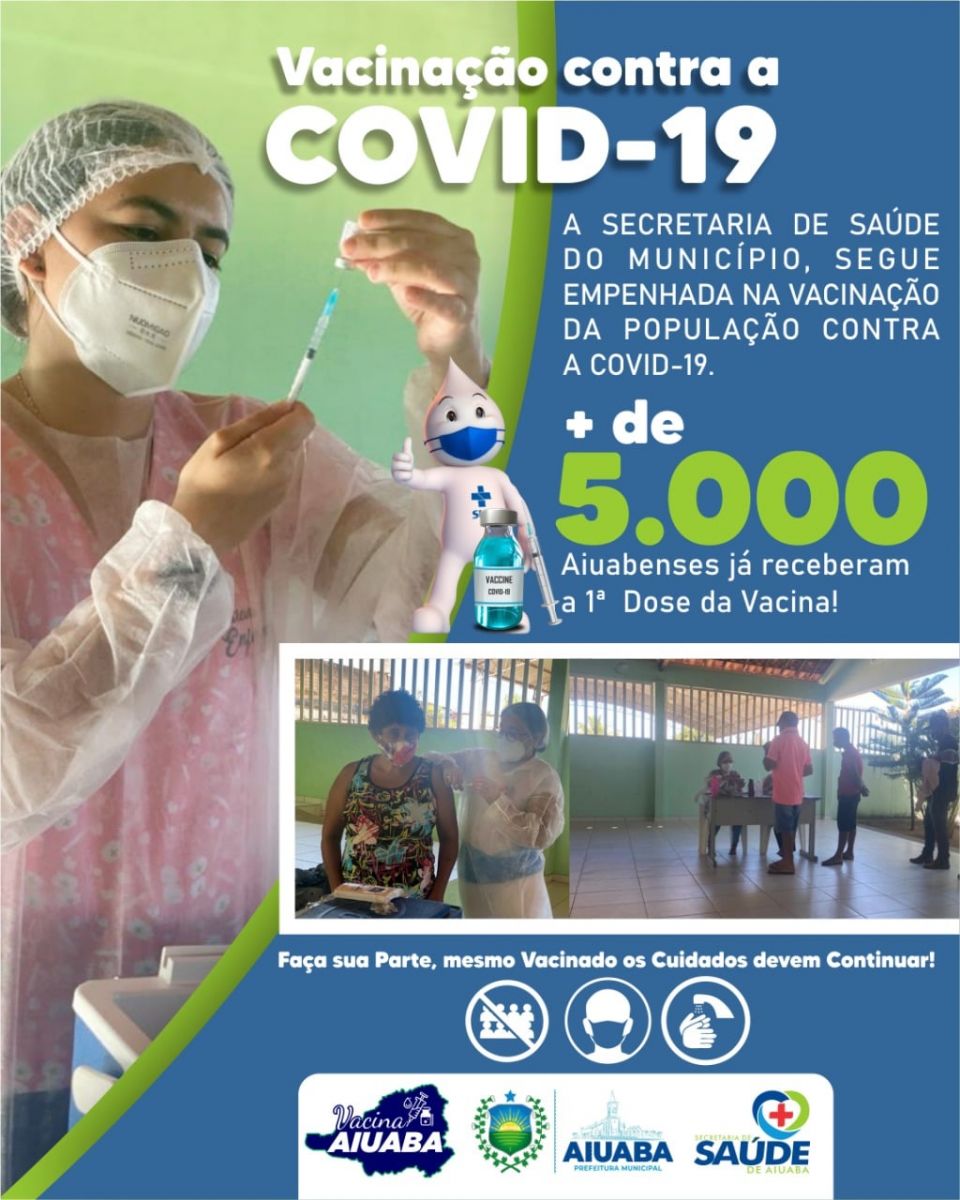O Município de Aiuaba já aplicou a primeira dose da vacina contra a Covid em mais de 5 mil pessoas. O balanço foi divulgado pela Secretaria de Saúde, que aguarda a chegada de mais doses dos imunizantes para dar continuidade a campanha.