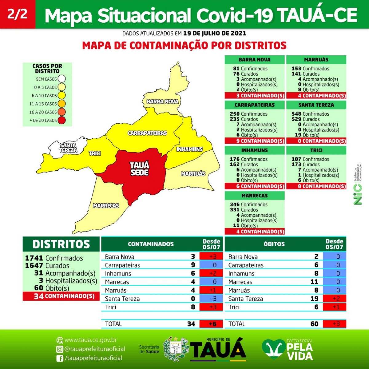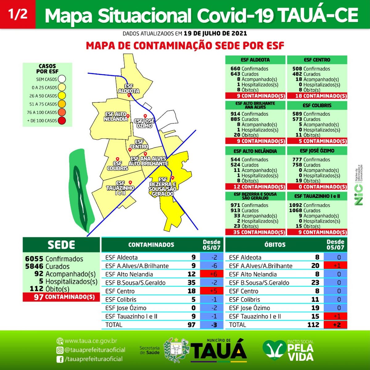 Divulgado na manhã de hoje(20), pela Secretaria de Saúde do Município de Tauá, o Mapa Situacional da Covid-19.