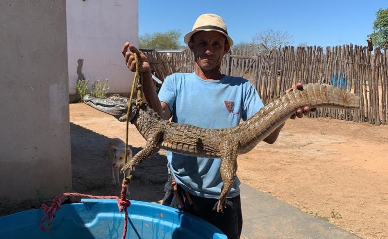 O animal de 1,50 de comprimento foi encontrado preso em uma rede de pesca na Fazenda Ipanema, área limítrofe entres os municípios de Tauá e Independência.