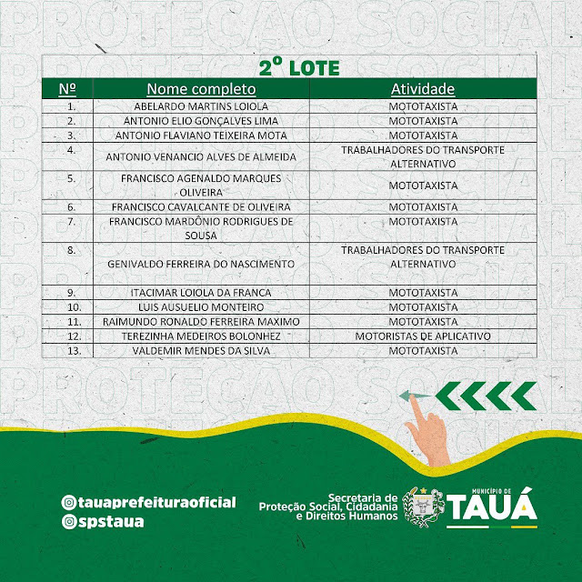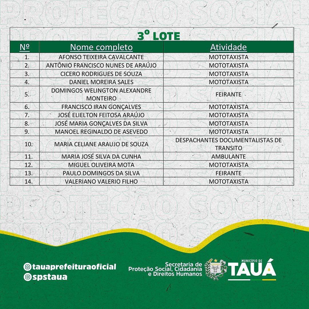 O Programa Auxílio Cesta Básica do Governo do Estado do Ceará entregará nesta quarta-feira(28), os cartões magnéticos referentes aos lotes, 01, 02 e 03, dos beneficiários que se inscreveram no Município de Tauá.