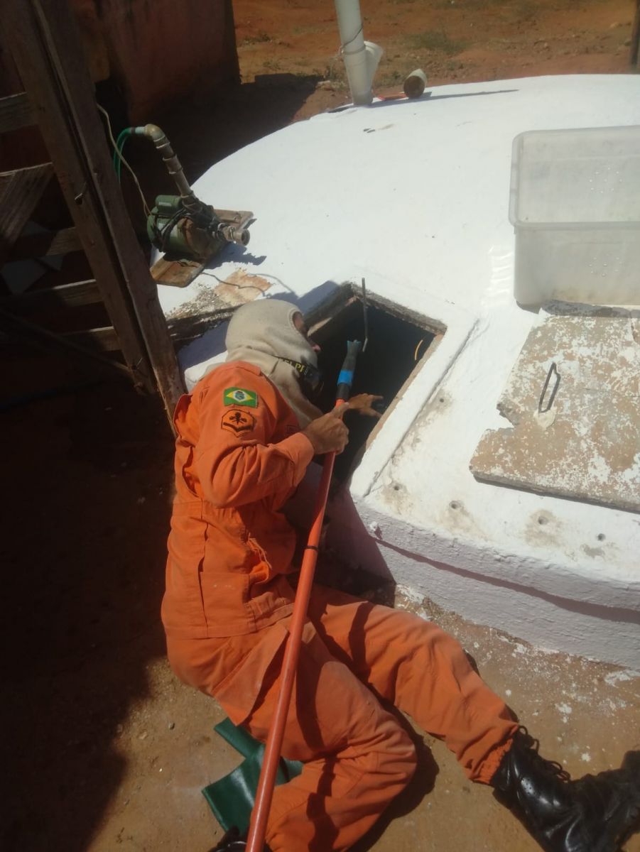 Por volta das 10:30h da última terça-feira(27), a guarnição recebeu ligação informando que uma cobra possivelmente Jararaca estava dentro da cisterna da casa da senhora Carmina, residente na localidade de São João, no distrito de Santa Teresa. A captura foi feita através do uso da vara de captura de cobra, que depois foi levada para local compatível a seu habitat, na CE-187, que liga Quiterianópolis e Tauá.