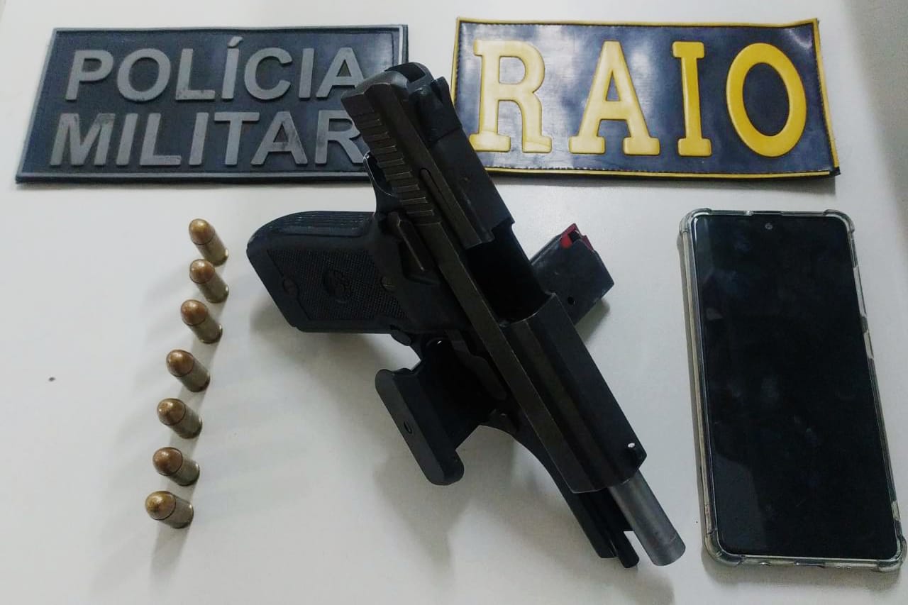 Policiais do CPRaio efetuaram prisão por porte ilegal de arma na noite de ontem(02), na cidade de Pedra Branca. A composição estava realizando abordagem quando avistou um Gol, cor prata, placas DGQ 2773, tentando se evadir do local, mas a viatura conseguiu alcançá-lo.