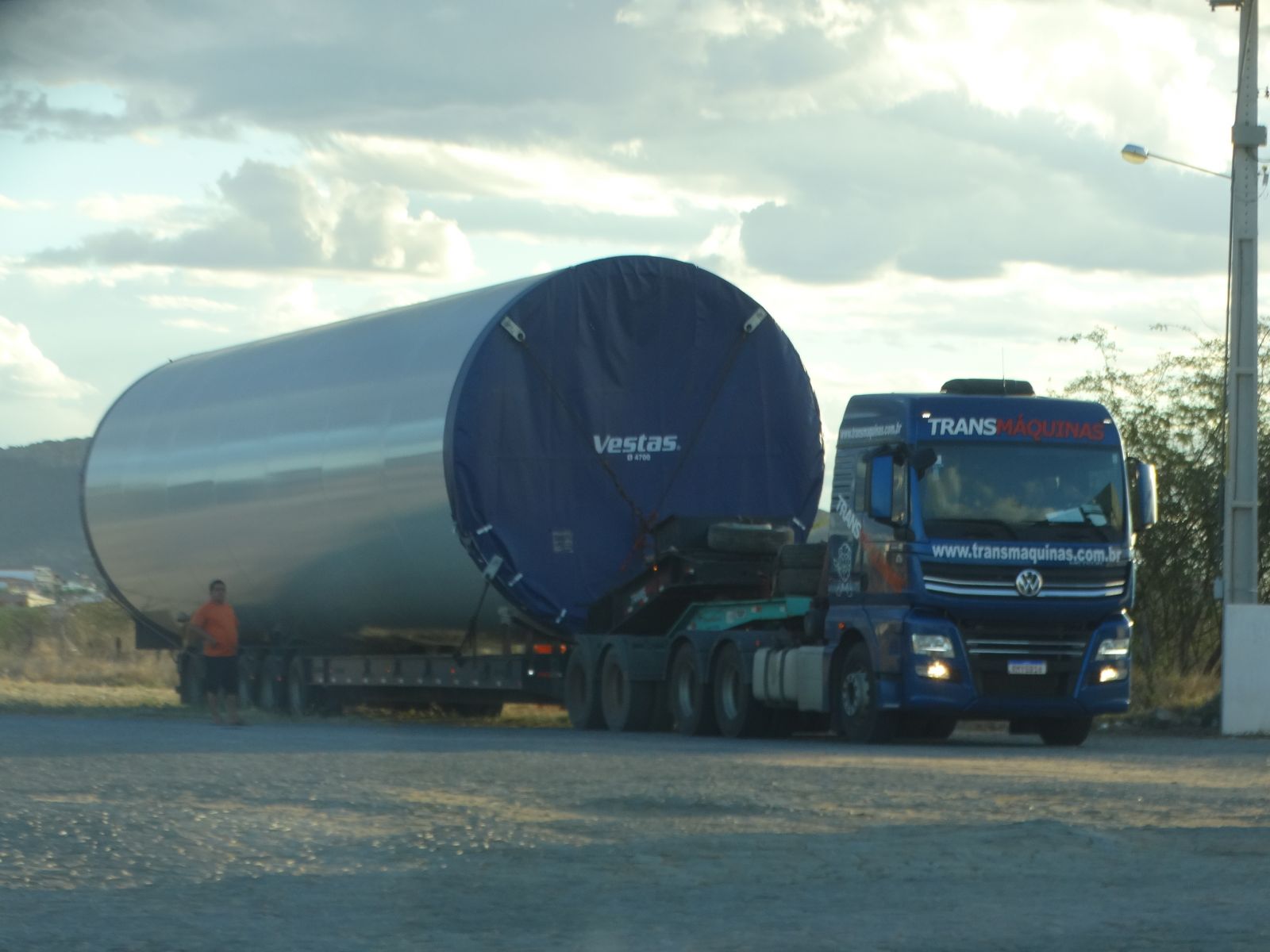 Transporte de enormes peças de energia eólica tem provocado danos aos cabos de energia, telefonia e internet na passagem por Tauá