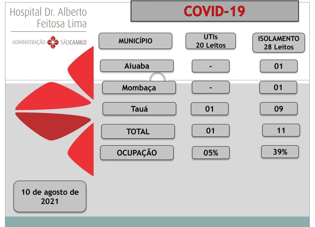 A UTI-Covid do Hospital de Tauá continua com apenas um paciente internado e 19 leitos vagos.