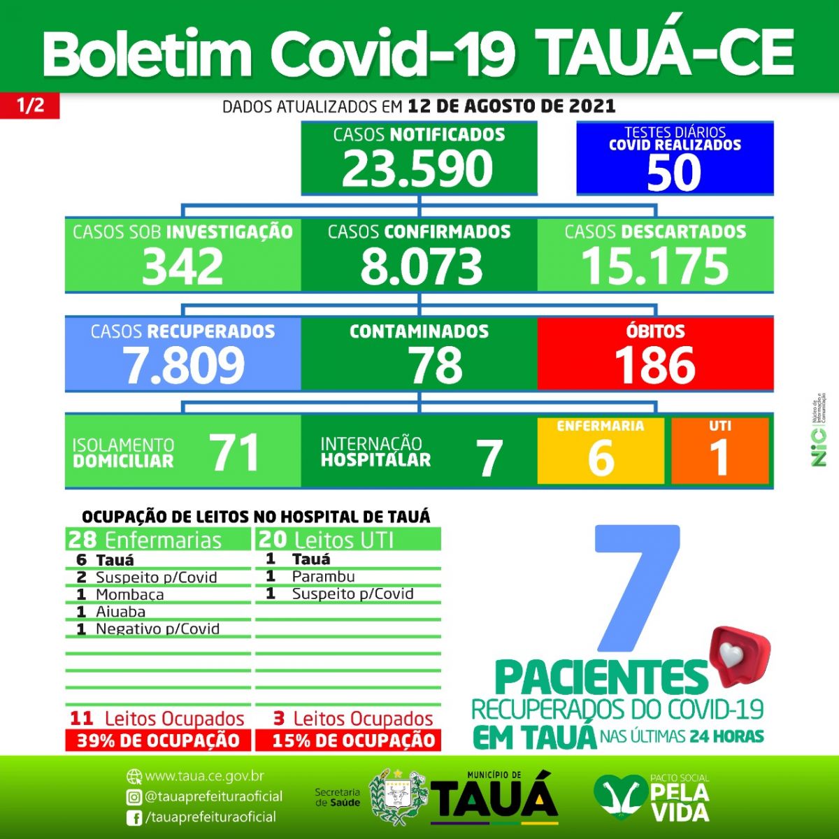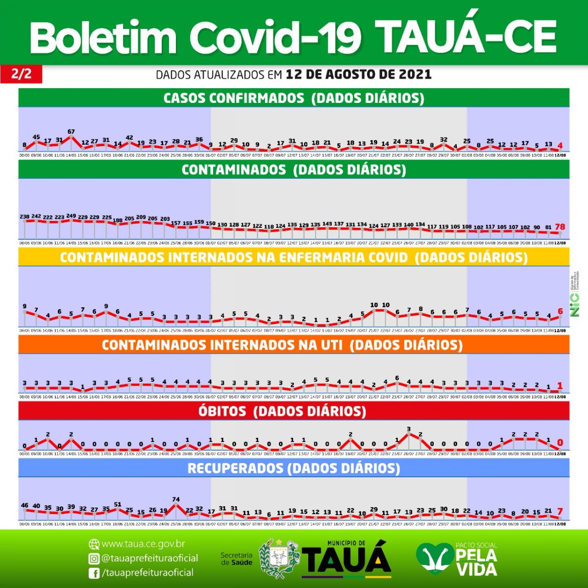 A Secretaria de Saúde atualiza o Boletim Epidemiológico da Covid-19 no Município de Tauá.