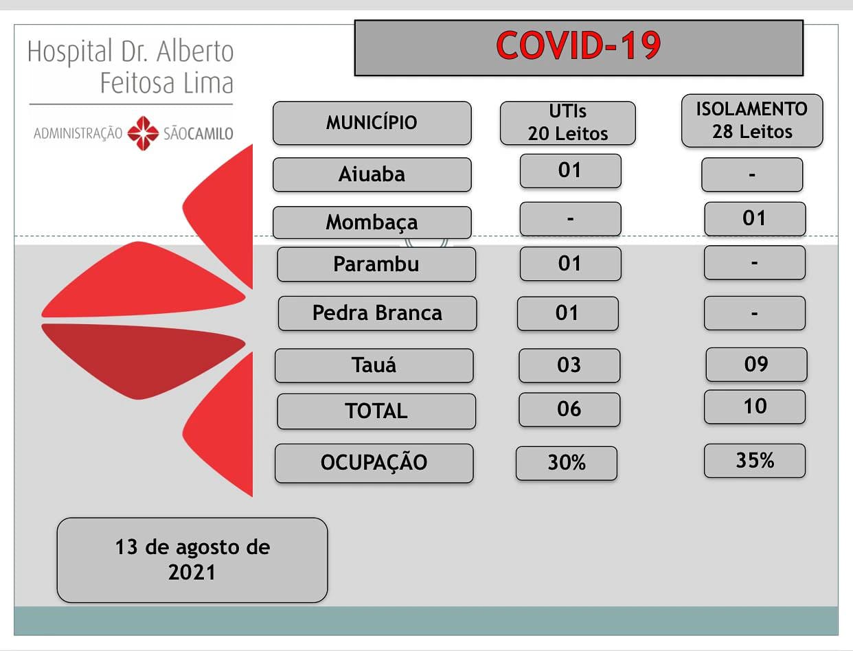 A taxa de ocupação de leitos de UTI-Covid no Hospital Dr. Alberto Feitosa Lima dobra e vai a 30%, com 06 pacientes internados, sendo 03 de Tauá.