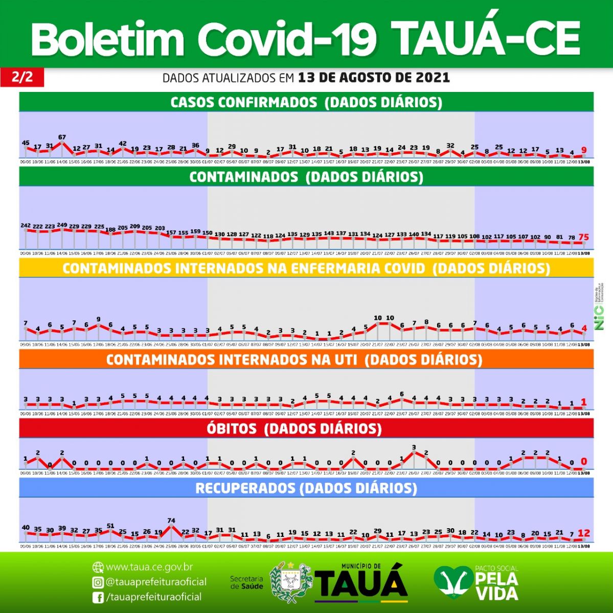 A Secretaria de Saúde atualizou na noite de ontem(13), o Boletim Epidemiológico da Covid-19 em Tauá, mantendo a tendência de queda de novos casos da doença.