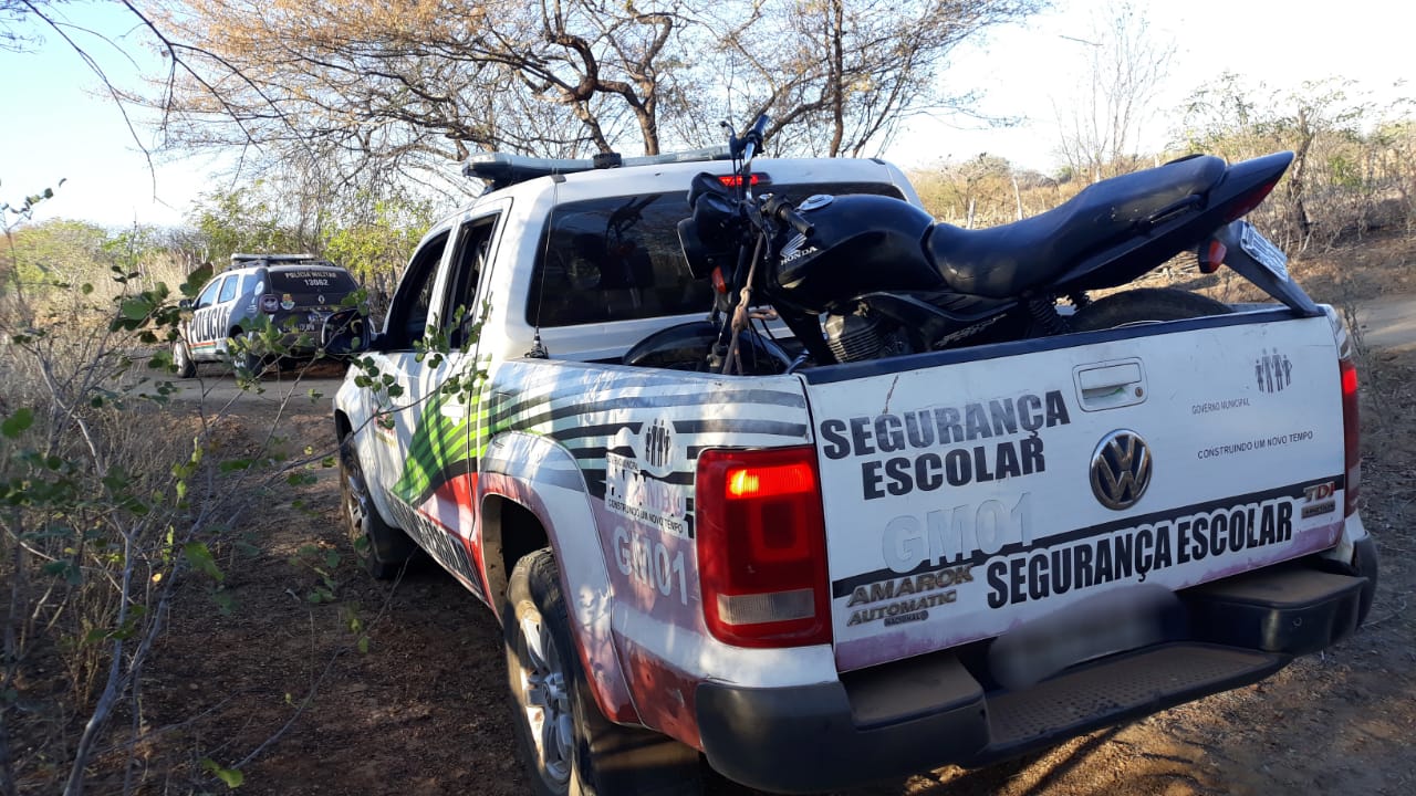 Um bilhete deixado na casa do proprietário, indicou a localização de uma moto Honda Fan, cor preta, placa NUO 0421-Parambu, roubada na noite do último dia 10 de agosto, durante um assalto ao Posto Maia, na localidade de Campo Grande, na zona rural do Município de Parambu.