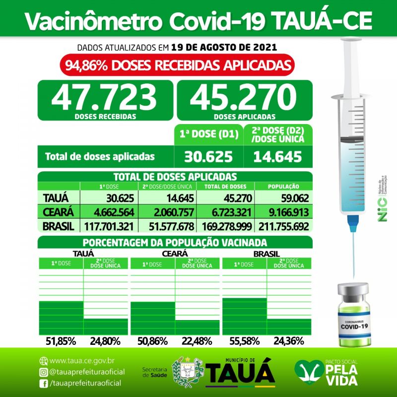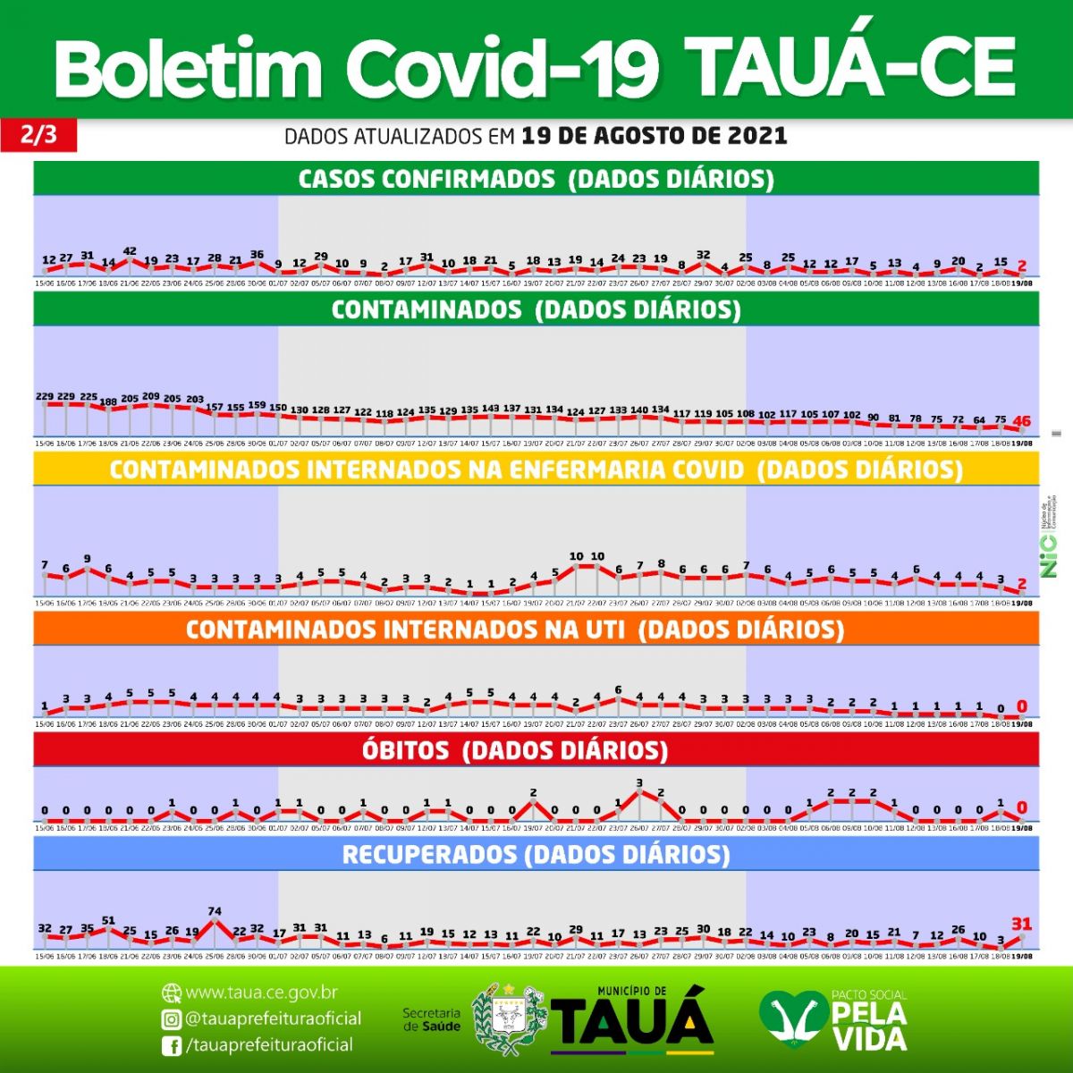 Continuam caindo o número de casos de Covid-19 no Município de Tauá, segundo o Boletim Epidemiológico divulgado ontem(19), pela Secretaria de Saúde.