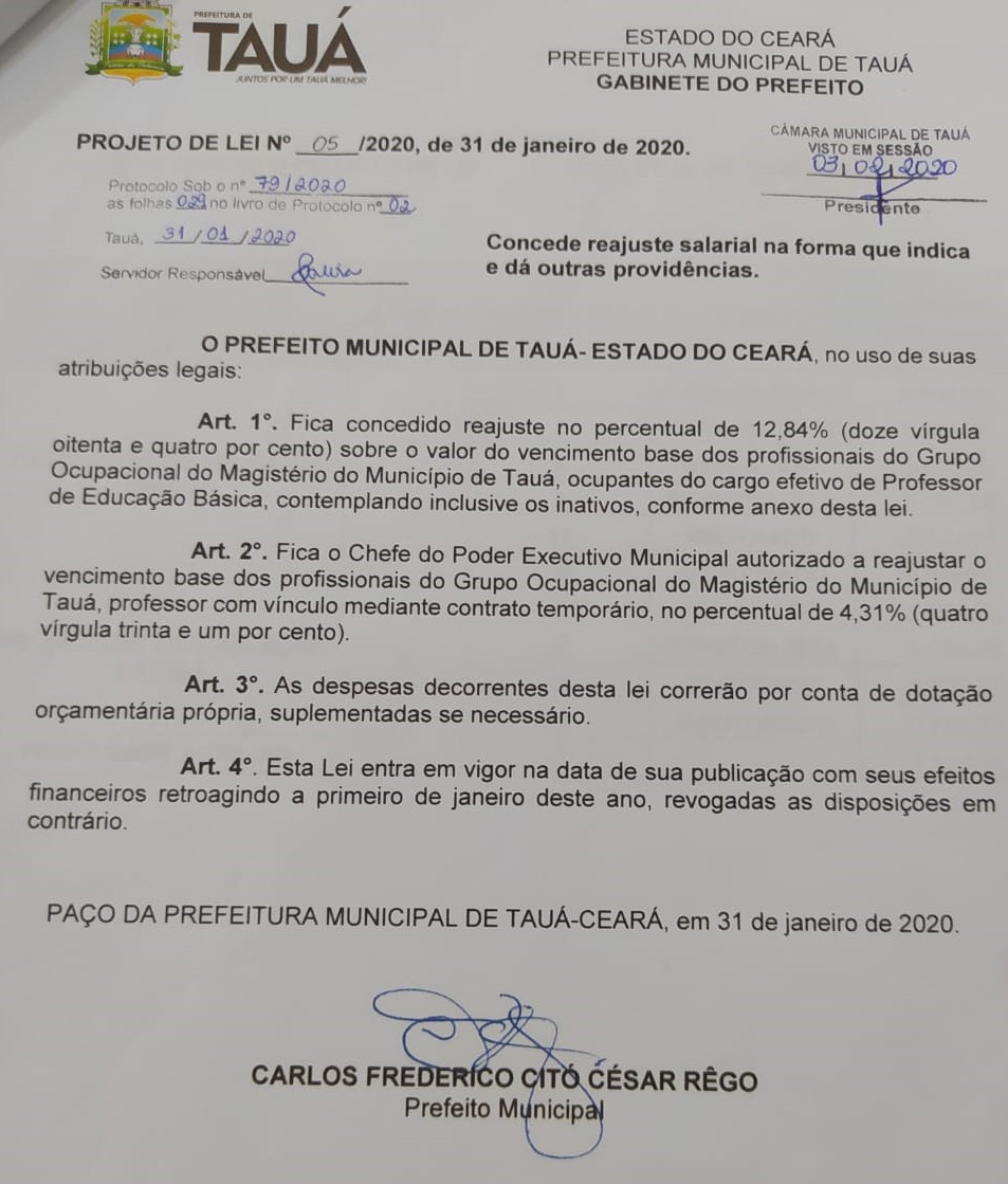 O Projeto de Lei prevê reajuste de 12,84% para os professores efetivos e 4,31% para os professores temporários, retroativos a 1º de janeiro de 2020. Após vários debates entre vereadores de situação e oposição, o Presidente Felipe Viana colocou a matéria em votação, iniciando por uma emenda de autoria do vereador Edyr Mota, que propunha incluir os "temporários" no reajuste de 12,84%, mas a iniciativa foi considerada inconstitucional pelas comissões técnicas por se tratar de matéria financeira, cuja responsabilidade é exclusiva do Poder Executivo. Sendo assim, a emenda foi rejeitada.