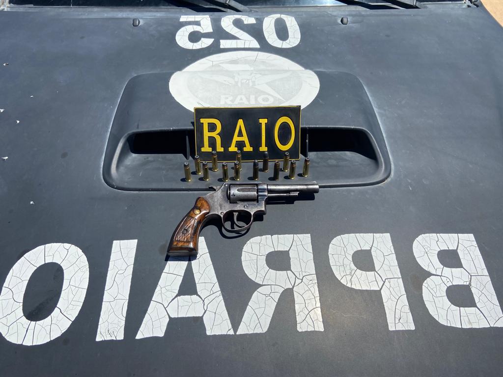 Policiais do CPRaio apreenderam um revólver e munições na localidade de Cruz, na zona rural de Quiterianópolis, após receberem denúncia sobre a comercialização de arma no local.